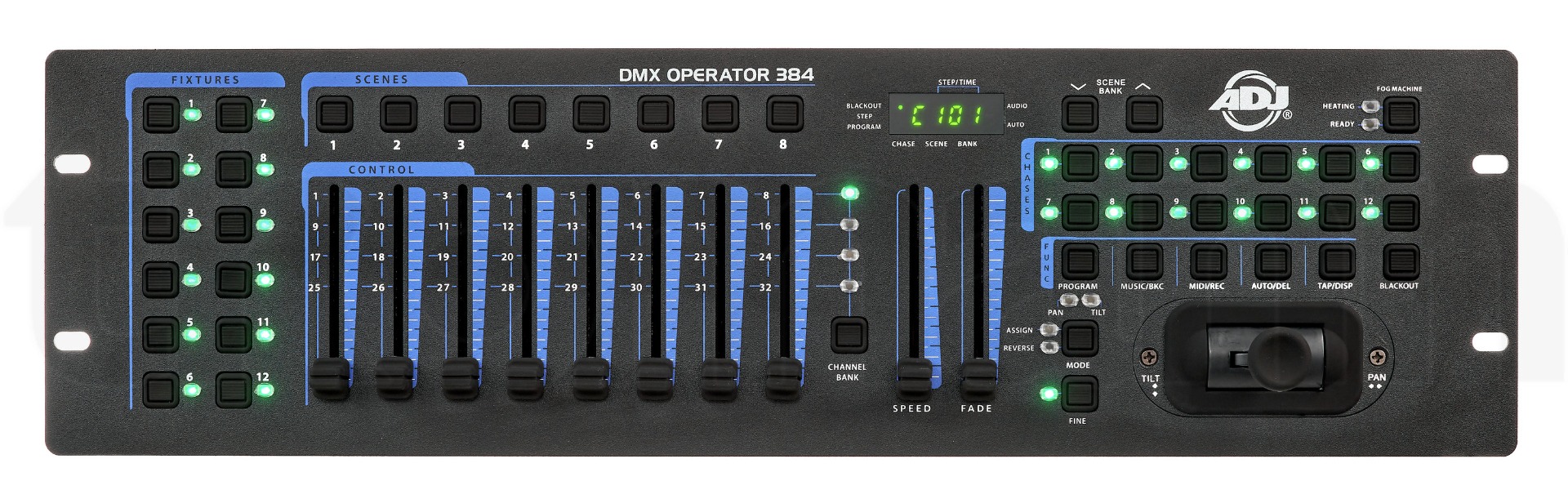 Med sine veldig funksjonelle kontrollere, pakket i en kompakt, rack monterbar formfaktor, er ADJ DMX Operator 384 et veldig godt valg av en DMX / MIDI-kontroller for dine sceneshow og DJ-behov som ikke tar mye bord plass.